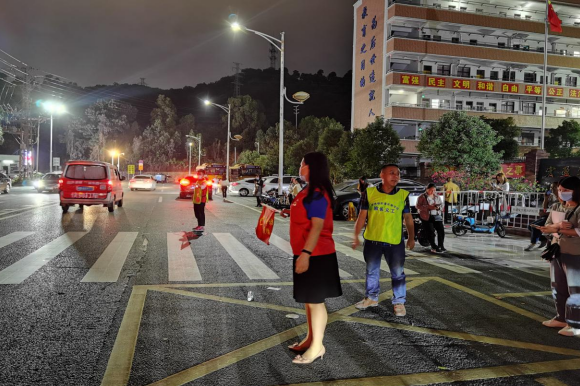 龙8国际党团志愿者分队队员现场维护交通秩序